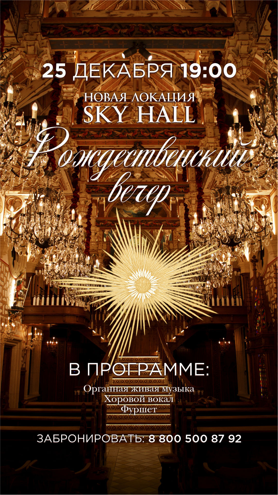 Sky Hall – новое пространство, выполненное в стилистике католической кирхи с изысканным внутренним убранством.